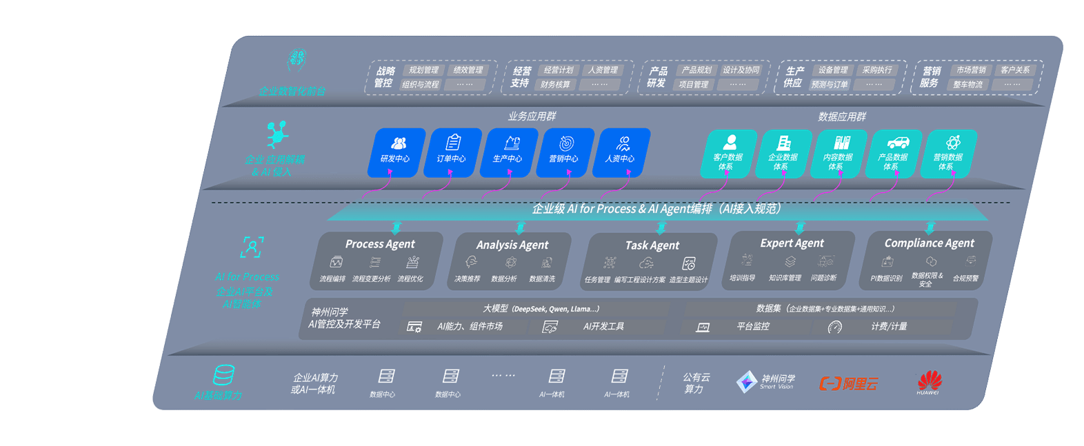 拼搏在线问学智车解决方案是一套基于AI技术的汽车行业智能化系统,,覆盖从底层算力到顶层AI应用的全栈方案。。方案由算力层、、模型层和应用层组成:算力层,,,,方案支持多种一体机配置,,具备云端灵活部署、、、、多云适配以及动态优化计算资源的能力;模型层,,拼搏在线问学平台版提供了企业级AI应用一站式构建与管理平台,,,支持基于后训练强化技术的汽车企业专属模型的训练、、、、评测和运营;应用层,,拼搏在线问学DeepSeek版提供包括超级员工、、智能招采、、智能营销、、、智能客服、、、AI for BI等一系列解决方案,,可助力汽车行业实现数字化转型,,,让管理更智能、、、响应更敏捷。。